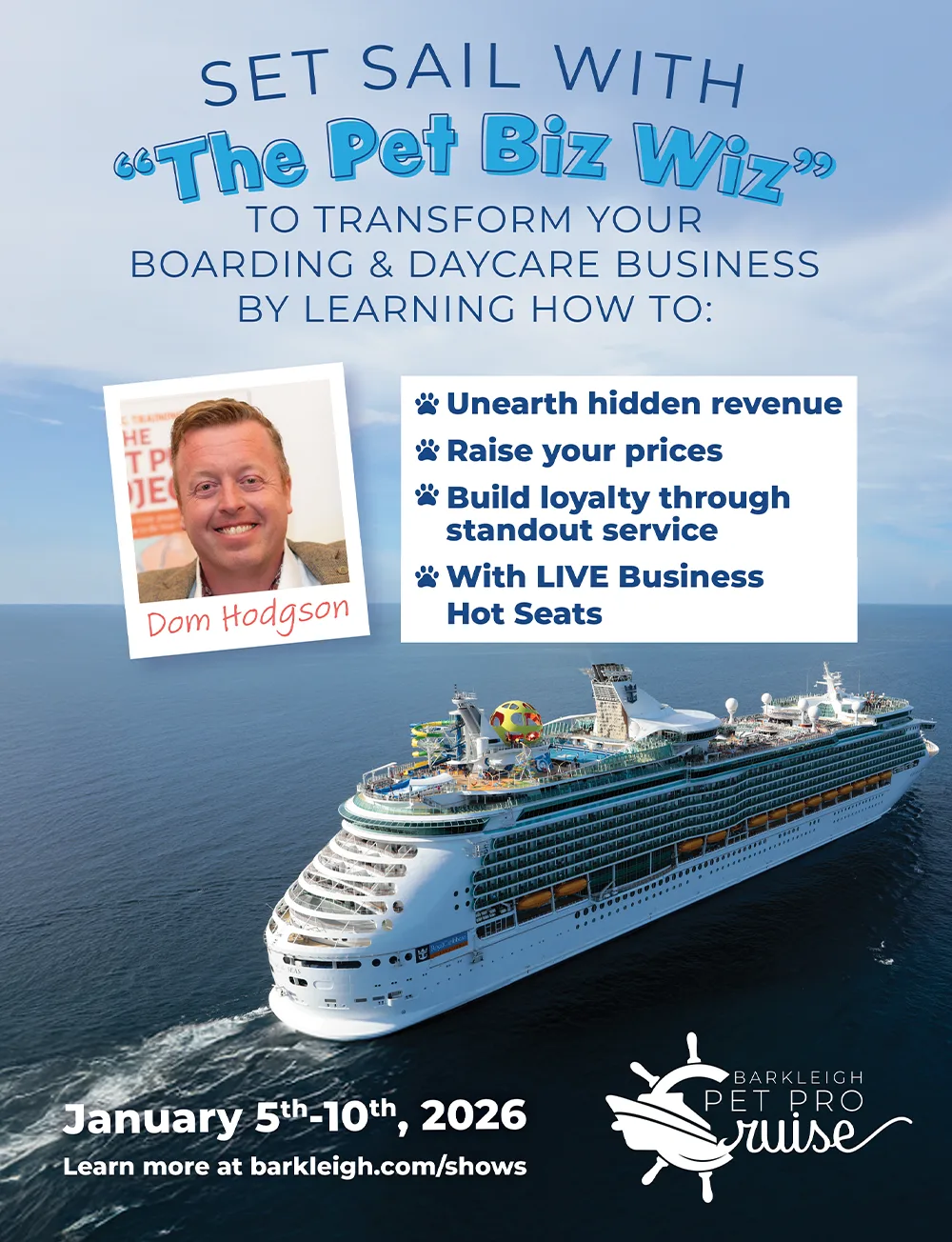 But that could all change this January, when you can finally trade the chaos for clarity—and join a crew of smart pet pros for the inaugural Pet Boarding and Daycare Barkleigh Pet Pro Cruise!
